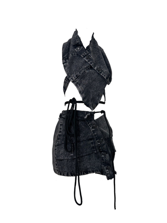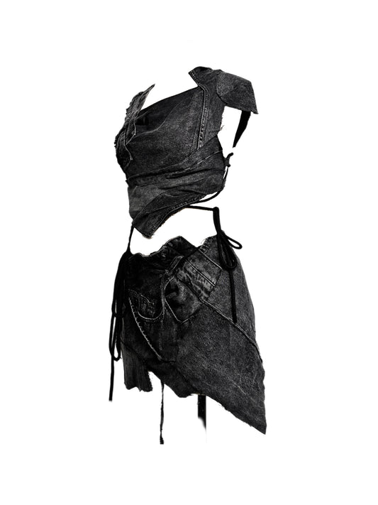 Dystopian Upcycled Denim Set - Top & Skirt By AAMBIVERT