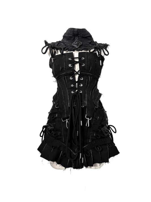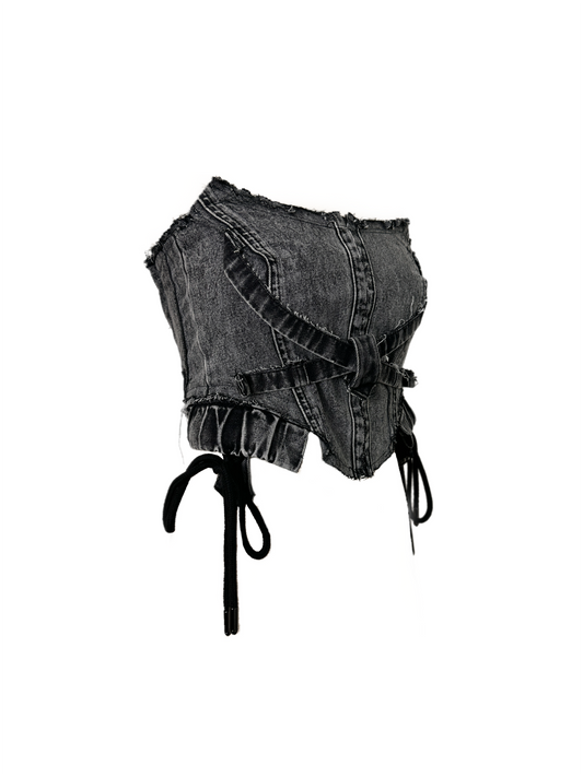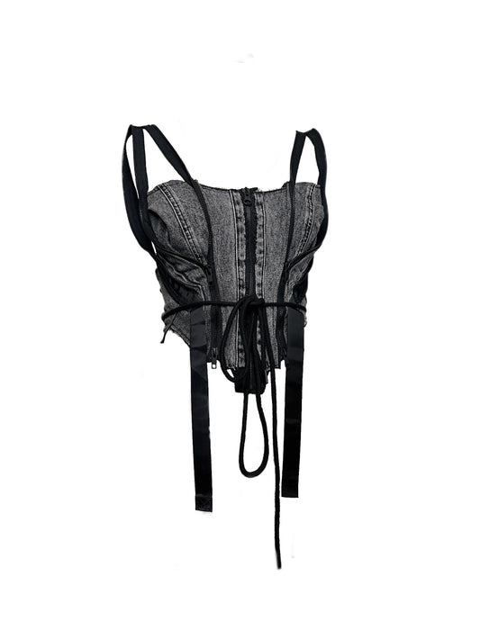 Dystopian Upcycled Denim Corset Top By AAMBIVERT