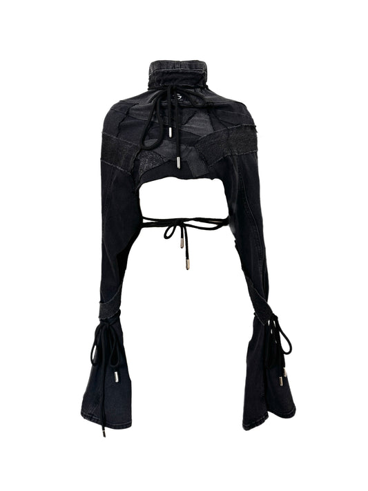 Dystopian Upcycled Denim Top with Long Sleeves By AAMBIVERT